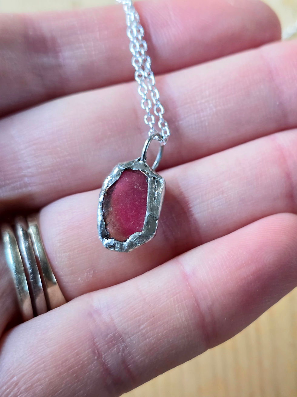 Collected by hand from beaches across the Isle of Lewis these fragments of sea polished glass are carefully matched and often paired with tiny shells to create unique pieces of jewellery